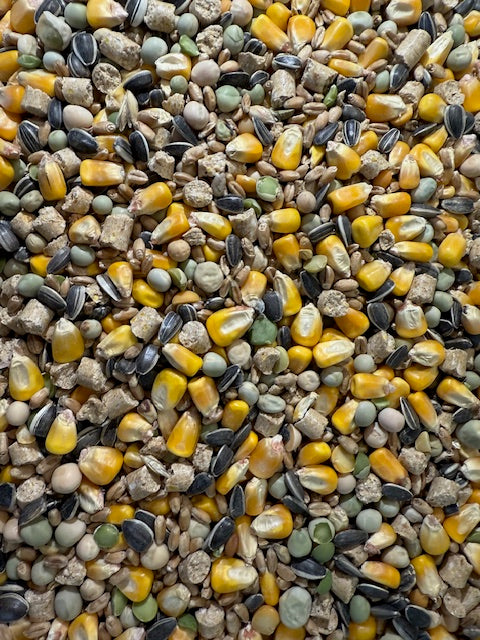 Contains: Whole Maize, Layer Pellets, Wheat, Blue Peas and NZ Sunflower Seeds.
